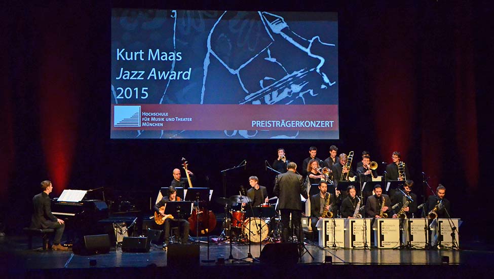 Die Preisträger des Kurt Maas Jazz Award 2015 stehen fest: Den 1. Preis, einen Sommerkurs am weltweit renommierten Berklee College of Music in Boston, erspielte sich der Pianist Leopold Betzl (Klasse Prof. Tizian Jost) mit seinem Trio. Den 2. Preis erhielt der Gitarrist Lukas Häfner (Klasse Prof. Peter O’Mara) und gewinnt damit eine Auftrittsmöglichkeit im Nightclub des Hotels Bayerischer Hof München. Der Klarinettist Jakob Lakner (Klasse Prof. Michael Riessler) erspielte mit seinen Eigenkompositionen den 3. Preis, der ihm einen Kurs der Internationalen Jazzakademie Burghausen ermöglicht. Die drei Preisträger überzeugten die Jury sowohl durch ihre technischen und kompositorischen Fähigkeiten als auch durch das Zusammenspiel mit ihren Ensembles und ihre Bühnenpräsenz.
