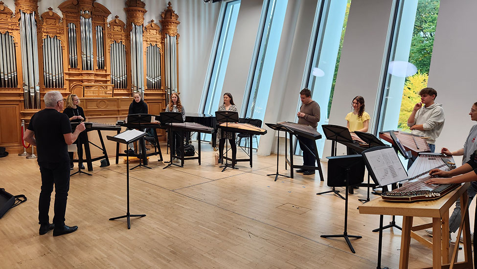 Lange schon stand die Idee immer mal wieder im Raum, nun wurde sie endlich realisiert: Vom 10. bis 12. Oktober 2025 trafen sich erstmals die Zitherklassen der Hochschule für Musik und Theater München und der Anton Bruckner Privatuniversität in Linz zu einem gemeinsamen Projekt!