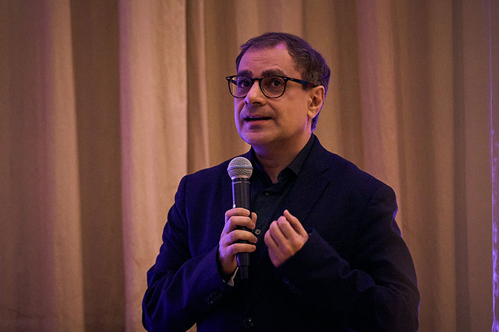 Prof. Ali Nikrang, dessen Professur für KI und Musikalische Kreation an der HMTM durch die Hightech Agenda des Freistaats Bayern ermöglicht wurde, gab Einblick in seinen Arbeitsbereich. Als Beispiel stellte er u.a. das Projekt der Kompositionsstudentin Danielle Lurie »Der Flederfrosch« vor, das im Rahmen des Projekts »Walzersymphonie« des Ars Electronica Futurelab zum Johann Strauss Festjahr 2025 in Wien mit einem ersten Preis ausgezeichnet wurde.
