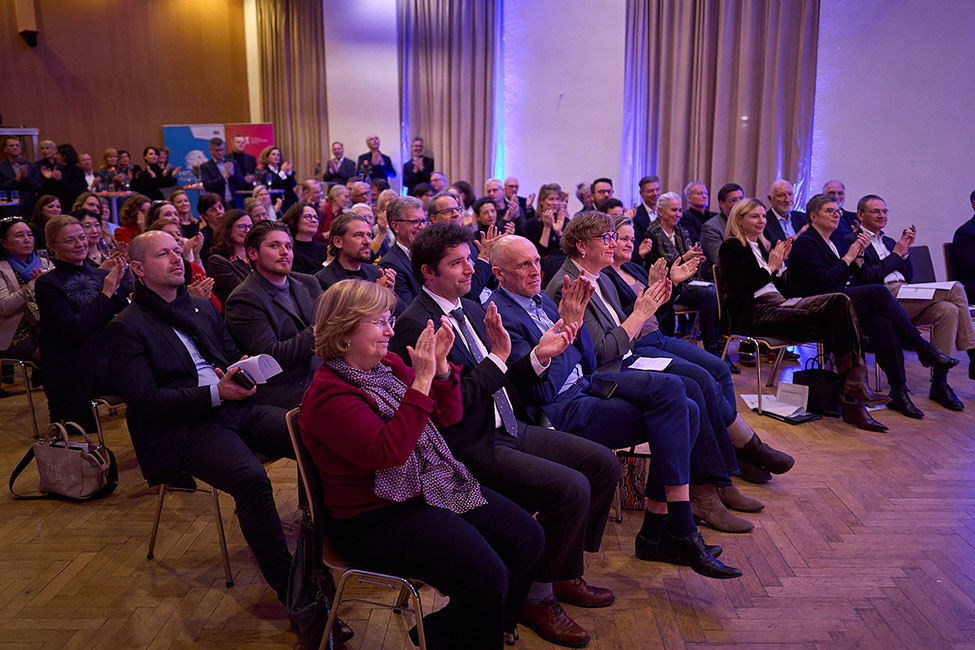In ihrem Grußwort würdigte Amtschefin Stephanie Jacobs die HMTM: »Die HMTM ist aktuell einer der spannendsten und lebendigsten Klangräume in München. Durch künstlerische Exzellenz, pädagogische Profession und wissenschaftliche Forschung entsteht ein einzigartiger Dreiklang für ein zukunftsweisendes Studienangebot in Bayern. Damit diese Musik auch räumlich den richtigen Resonanzboden findet, braucht die HMTM passende Voraussetzungen. Ich bin zuversichtlich, dass wir 2026 die nächsten entscheidenden Schritte in der Großen Baumaßnahme der Campusentwicklung der HMTM gehen werden.«